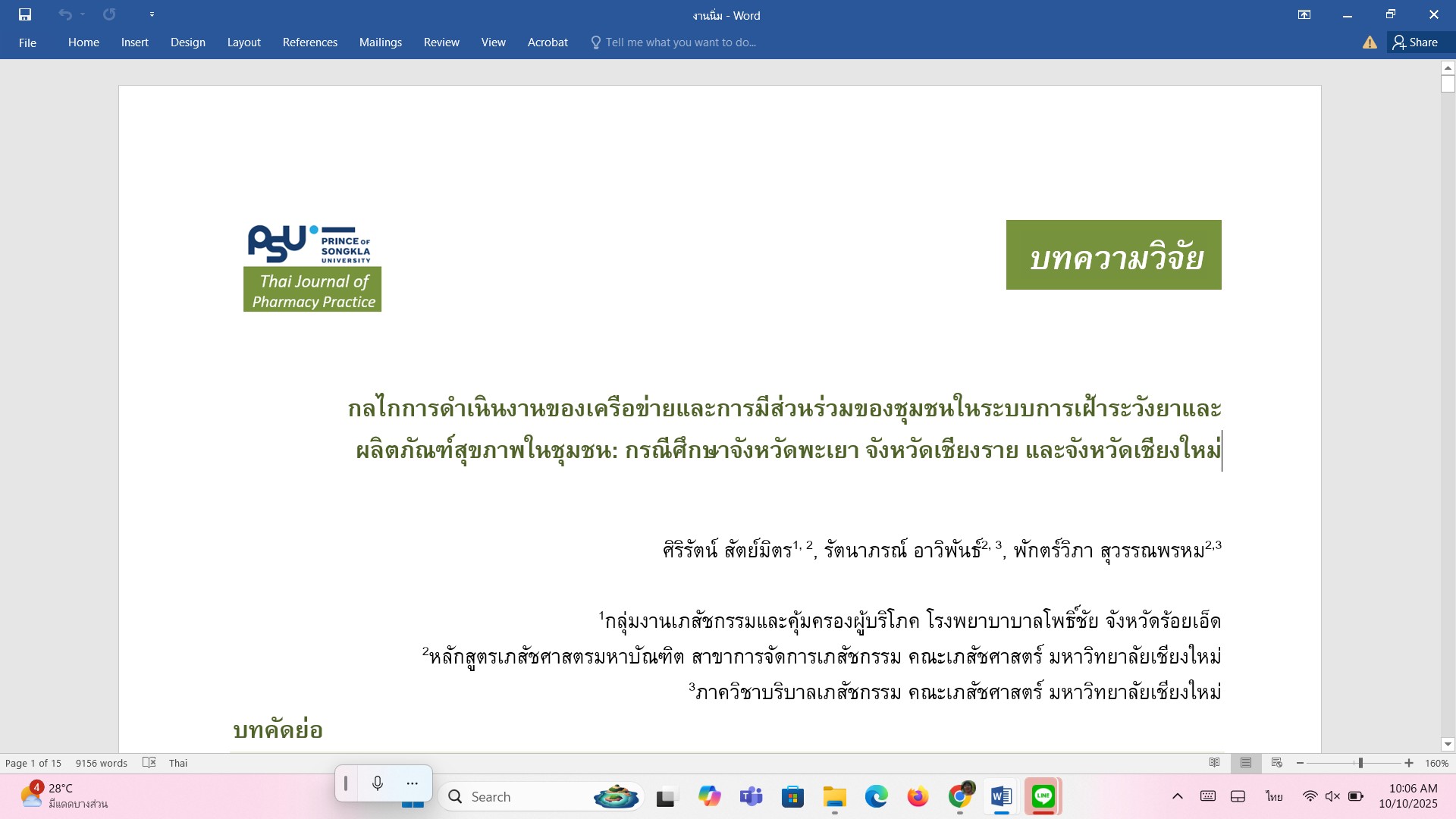 กลไกการดำเนินงานของเครือข่ายและการมีส่วนร่วมของชุมชนในระบบการเฝ้าระวังยาและ ผลิตภัณฑ์สุขภาพในชุมชน: กรณีศึกษาจังหวัดพะเยา จังหวัดเชียงราย และจังหวัดเชียงใหม่
